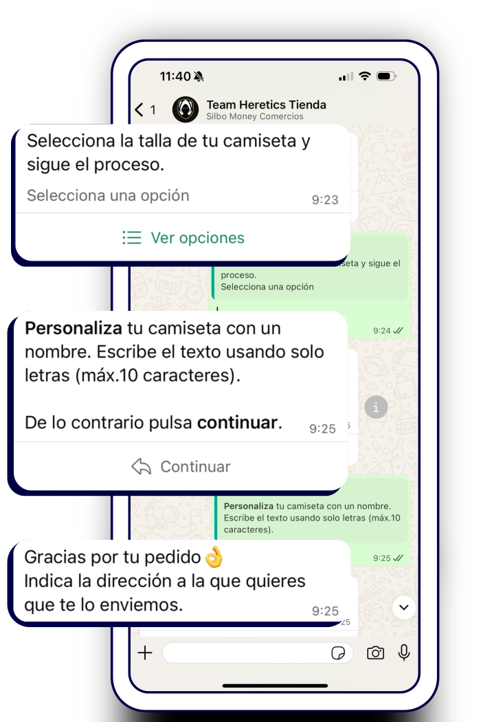 Así es de sencillo para tus clientes, conversan, compran y pagan.